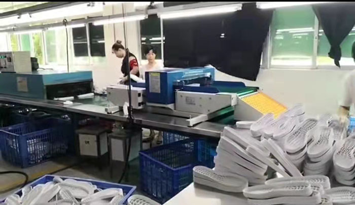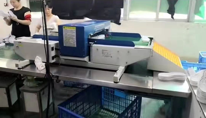 鞋廠流水線上檢針機使用現場圖片