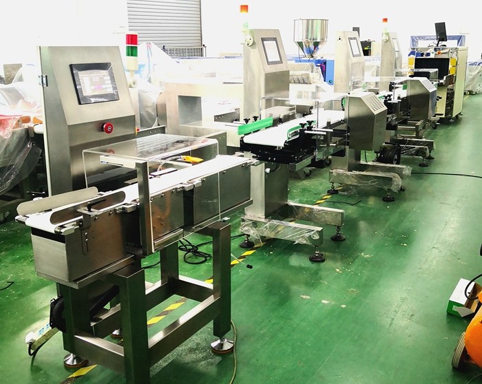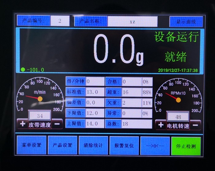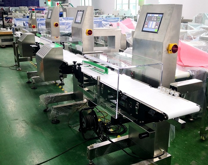 產(chǎn)品經(jīng)由上一段流水線或者人工上料后輸送進入到“檢重秤”。